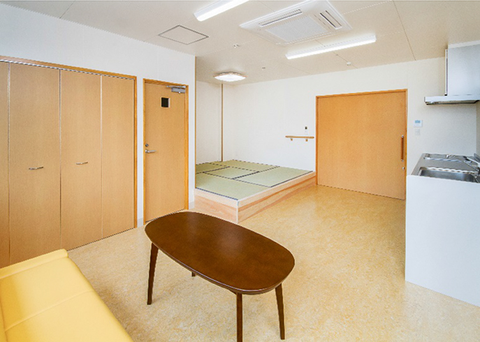 少人数のユニットでキッチンを囲み、家庭的な雰囲気と介護設備の整った専門的な個別ケアを提供いたします。